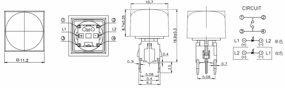 帶燈輕觸開關(guān)TS1-00-11TBR-0N-2S