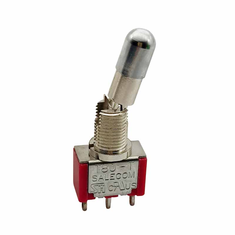 鈕子開關,搖頭開關T80-T系列,有SPDT、DPDT、3PDT、4PDT等功能,有直腳和90度彎腳,各種端子種類跟長度,各種手柄,提拉自鎖式手柄以及各種固定方式,我們產品擁有UL、ENEC并符合ROHS規范。