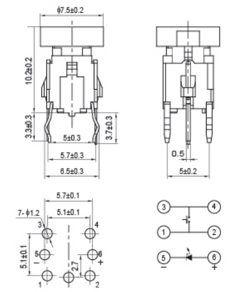 • 帶燈輕觸開(kāi)關(guān)TS1-00-2GR-0N-2S