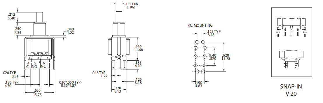 Contact Rating: 1A@120VAC or 28 VDC;