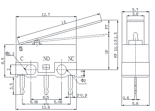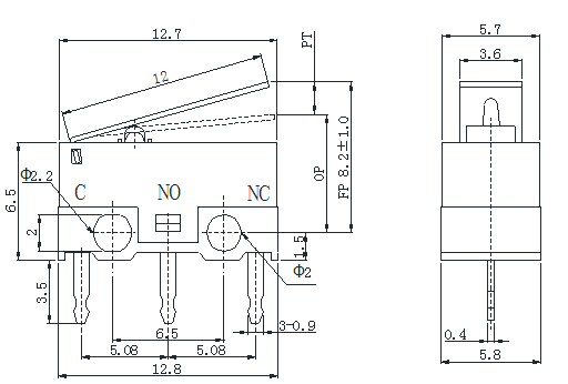 電氣參數(shù):1A 250VAC 3A 250VAC