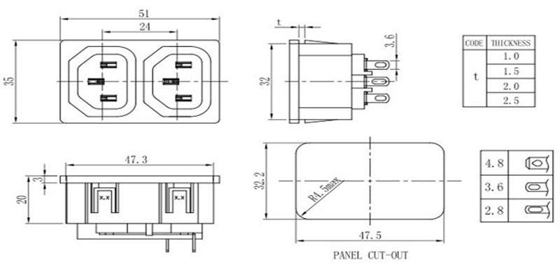 AC電源插座系列,單插、二合一、三合一保險插座等多種規(guī)格,大電流10A ,15A,產(chǎn)品通過UL VDE CCC CB等認(rèn)證,常見于家用電器,音響功放機等